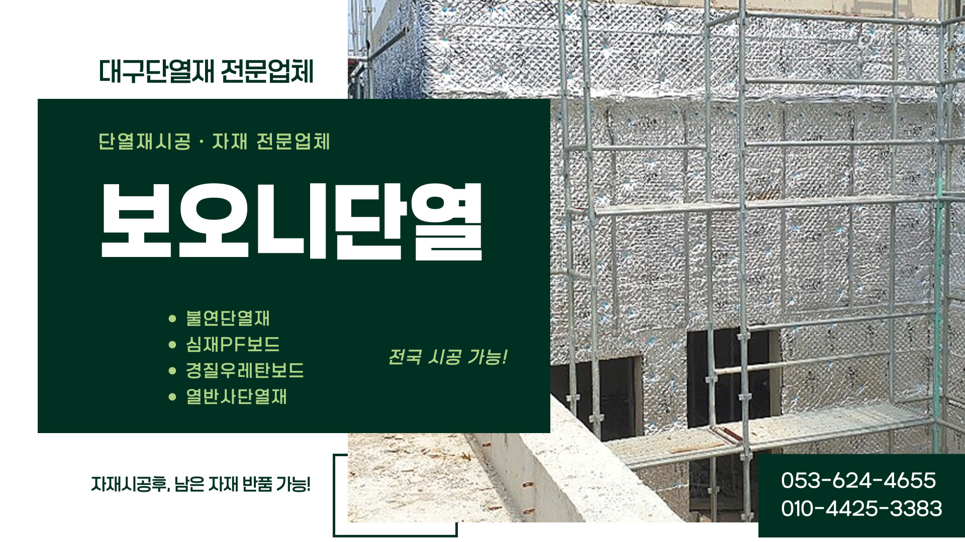 대구단열재 전문 보오니단열입니다..